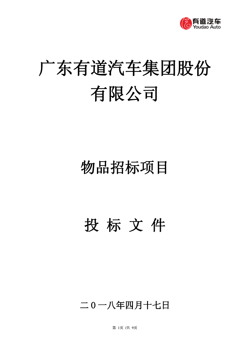 廣東有道汽車集團(tuán)股份有限公司物品采購招標(biāo)
