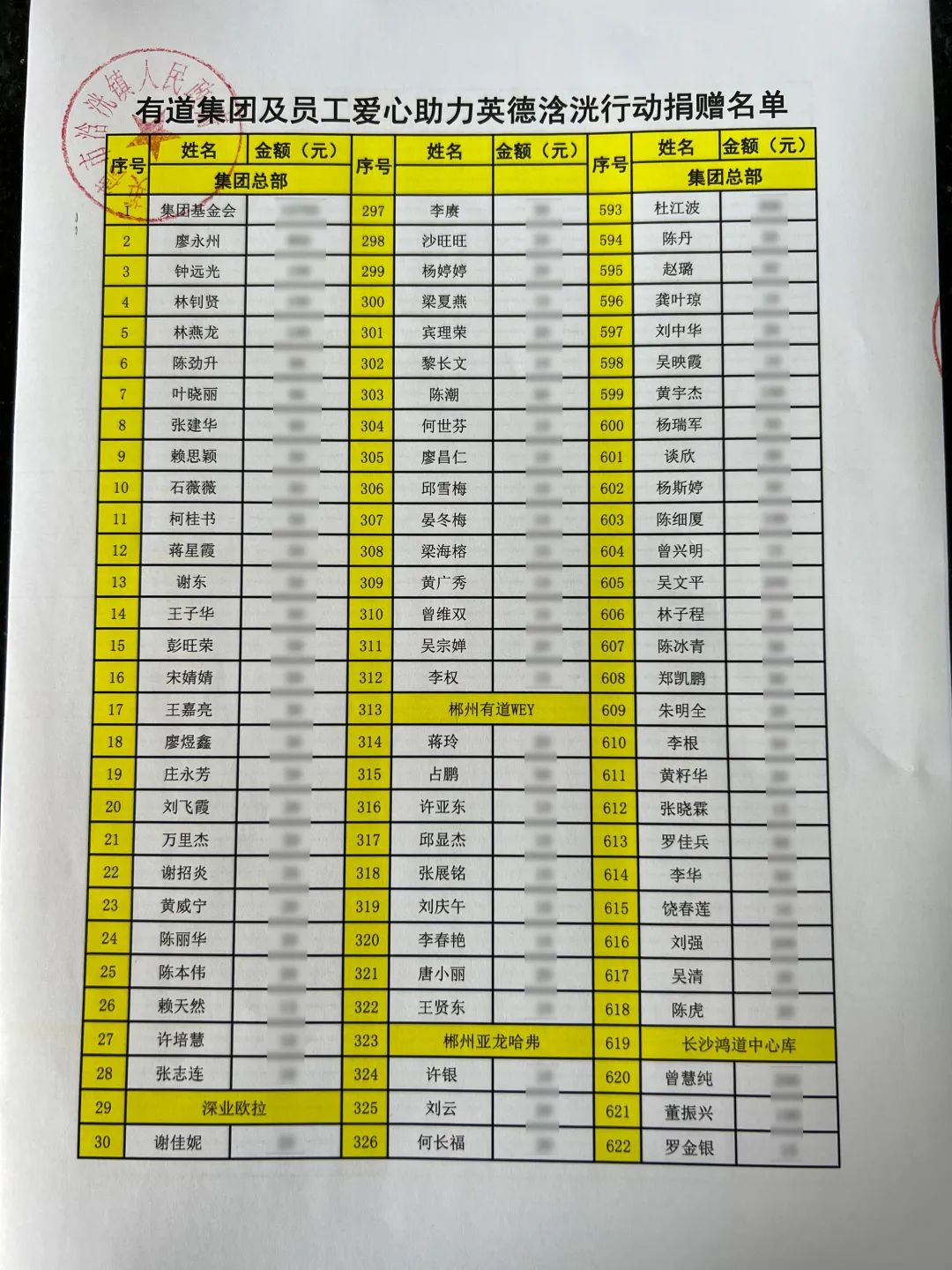 有道集團員工愛心捐贈名單