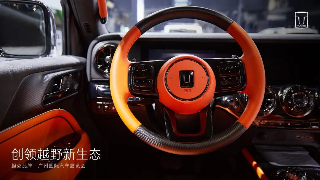 坦克300聯(lián)合CYBERSPACE超境共同打造的坦克300賽博騎士首次亮相廣州車(chē)展,內(nèi)飾有“耀斑橙”和“脈沖藍(lán)”兩款,酷炫耀眼。