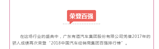 廣東有道汽車集團(tuán)股份有限公司榮登2018中國(guó)汽車經(jīng)銷商集團(tuán)百?gòu)?qiáng)排行榜